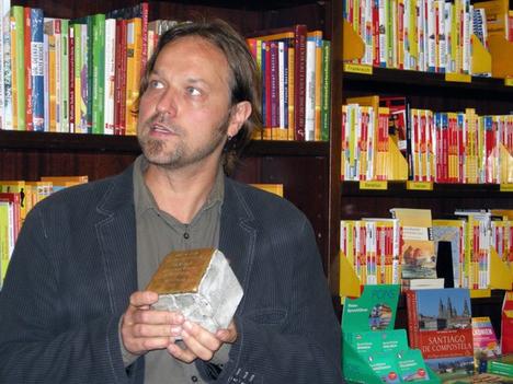 Das Buch "Gegen das Vergessen" ist für fünf Euro bei der Buchhandlung Raabe erhältlich. Info: www.forum1welt.de. Interessenten können am 21. September beim Verlegen von Stolpersteinen in Trier dabei sein. Kontakt: Markus Pflüger, 0651/9941017.Markus Pflüger aus Trier berichtet über die Aktion „Stolpersteine“ (Foto links unten und oben). Stadtbürgermeister Karl-Heinz Schwartz signiert Bücher, die von den Schicksalen jüdischer Familien in Gerolstein handeln (Foto rechts). Zum Redaktionsteam gehören Karl-Heinz Böffgen und Christa Karoli. TV-Fotos (2): Gabi Vogelsberg, Foto: dpa